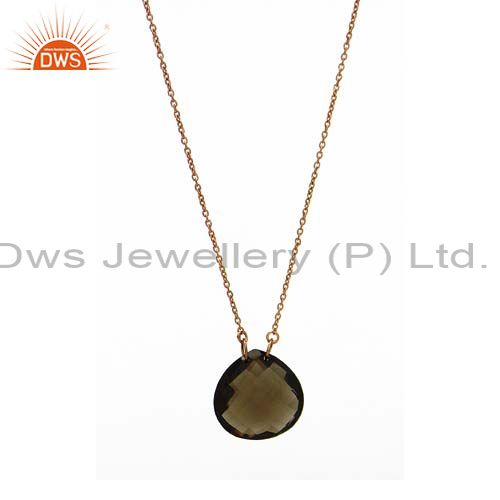 18K Yellow Gold Plated Sterling Silver Faceted Smoky Quartz Pendant With Chain