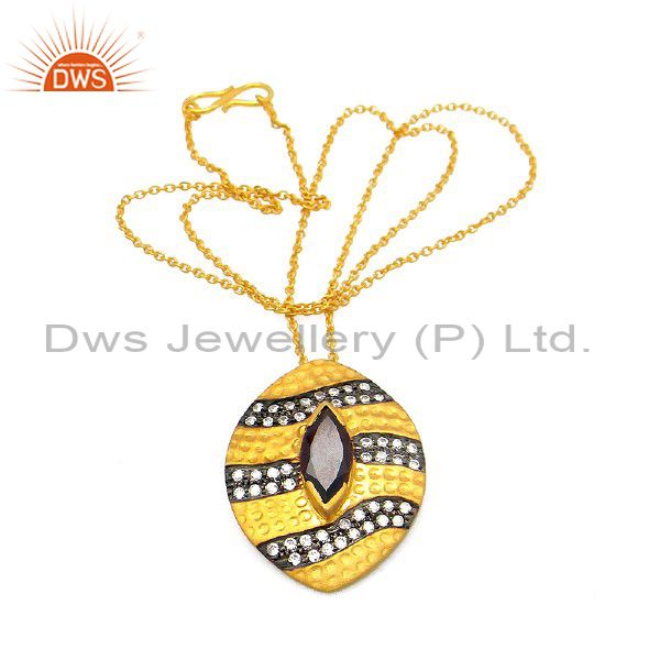 18K Yellow Gold Plated Sterling Silver Garnet Gemstone And Cz Textured Pendant