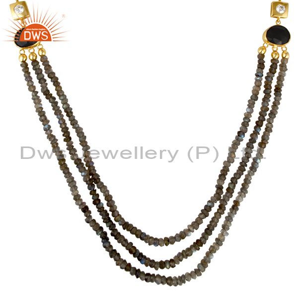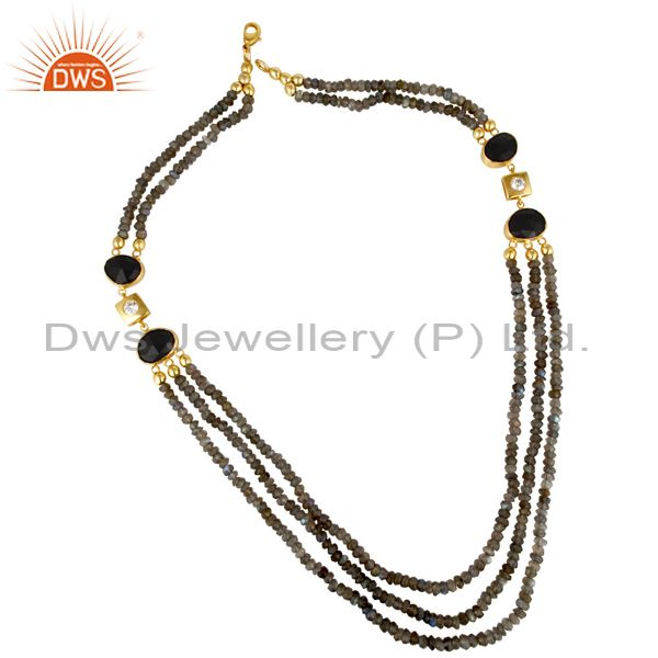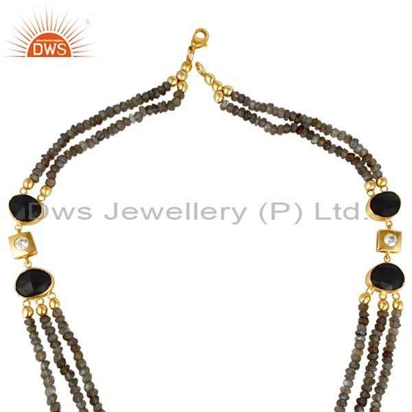 18K Yellow Gold Plated Sterling Silver Labradorite And Black Onyx Beads Necklace
