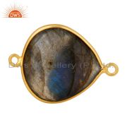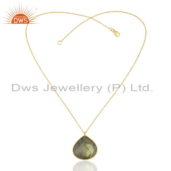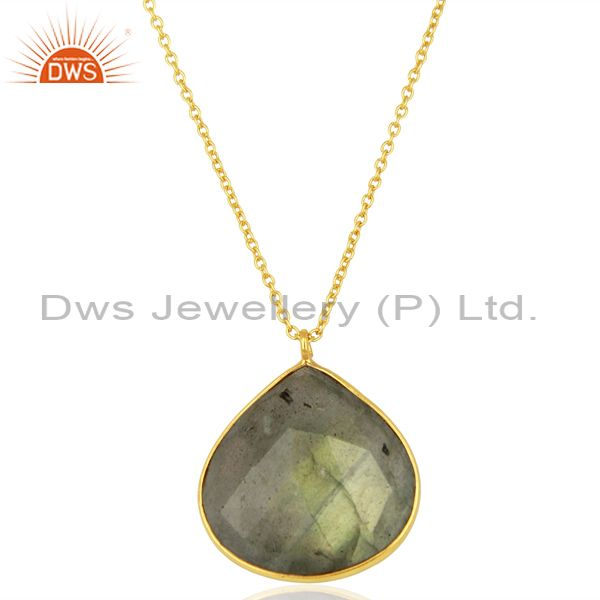 18K Yellow Gold Plated Sterling Silver Labradorite Bezel Set Pendant With Chain