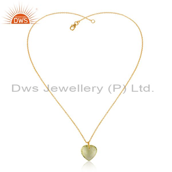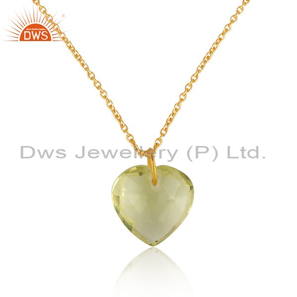 18K Yellow Gold Plated Sterling Silver Lemon Topaz Heart Pendant With Chain