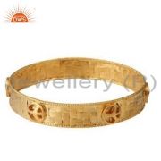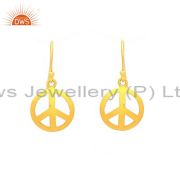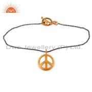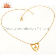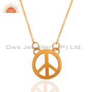 18K Yellow Gold Plated Sterling Silver Peace Sign Engraved Pendant With Chain