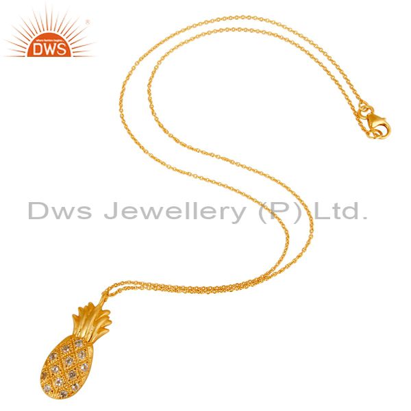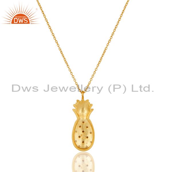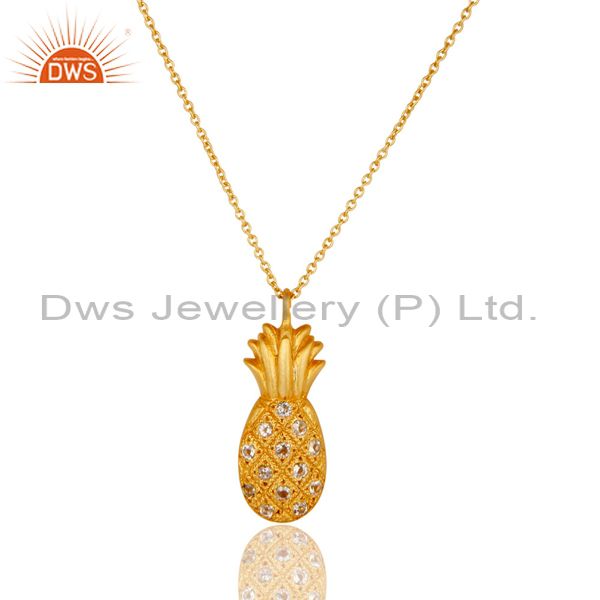 18k Yellow Gold Plated Sterling Silver Pineapple Design Chain Pendant with Topaz