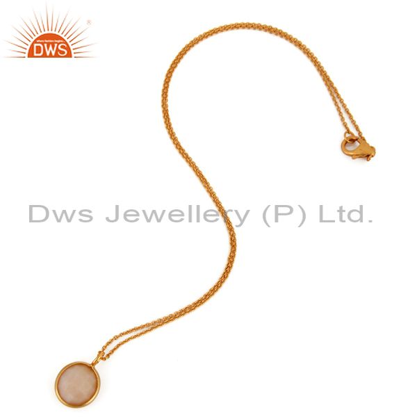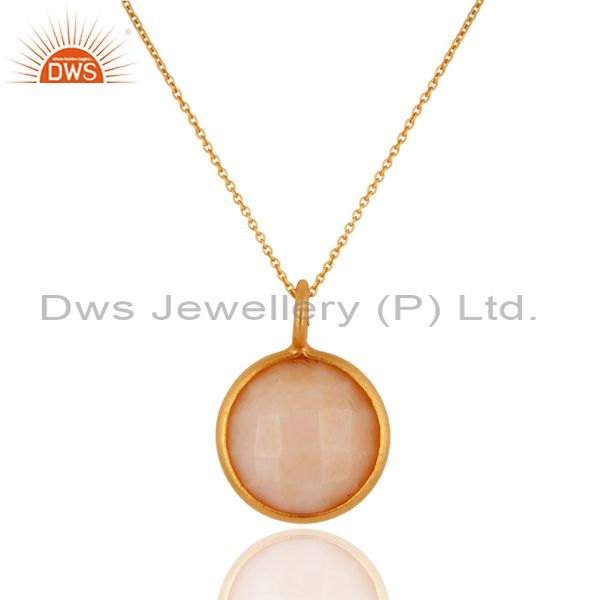 18K Yellow Gold Plated Sterling Silver Pink Opal Bezel Set Pendant With Chain