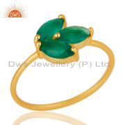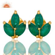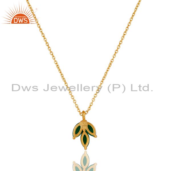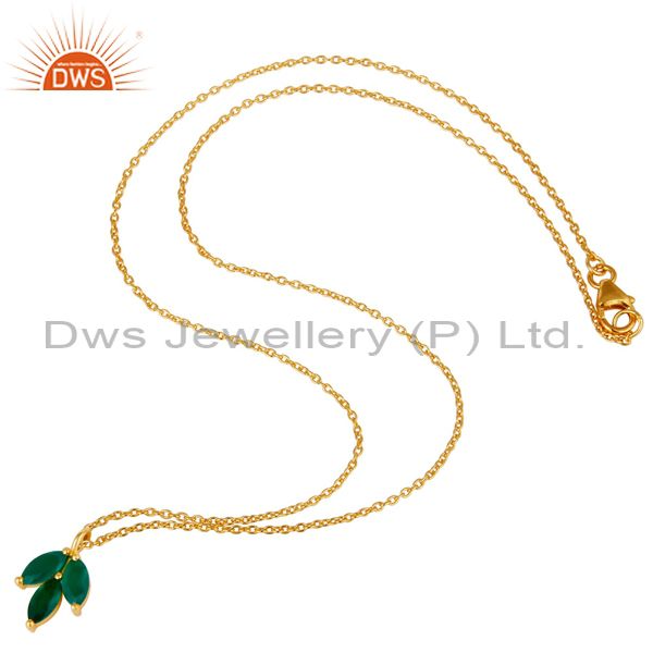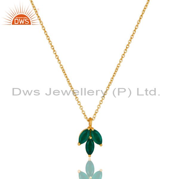 18k Yellow Gold Plated Sterling Silver Prong Set Green Onyx Pendant with Chain