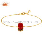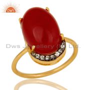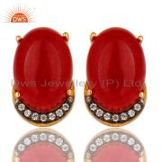 18K Yellow Gold Plated Sterling Silver Red Aventurine And CZ Pendant With Chain