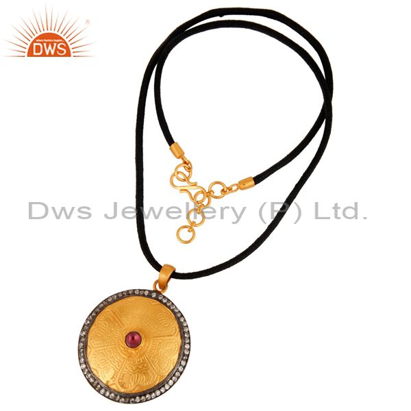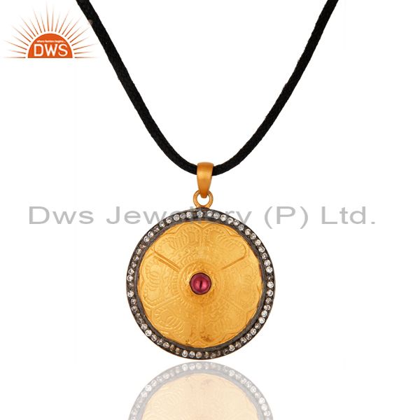 18K Yellow Gold Plated Sterling Silver Rhodolite Garnet Gemstone Pendant With Cz