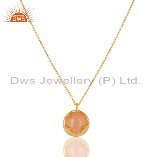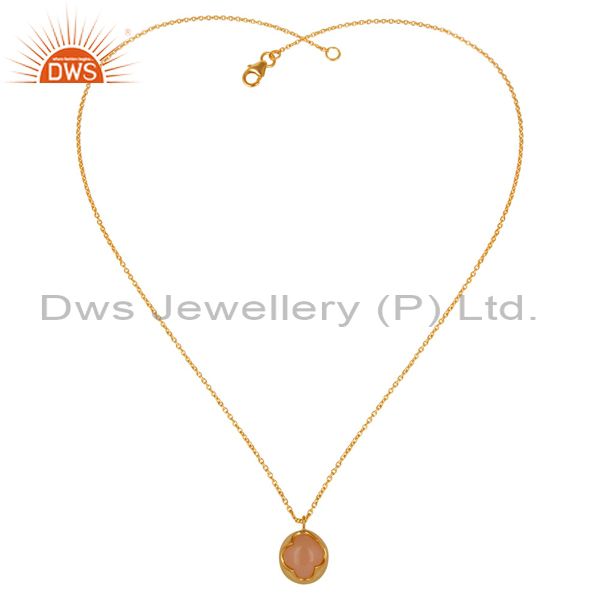 18K Yellow Gold Plated Sterling Silver Rose Chalcedony Designer Chain Pendant