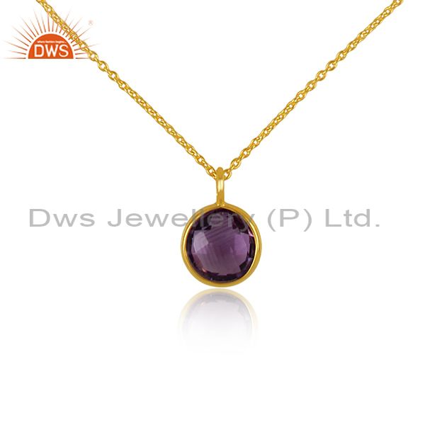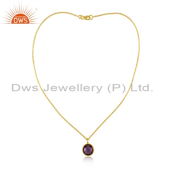 18K Yellow Gold Plated Sterling Silver Round Set Amethyst Pendant Chain Necklace