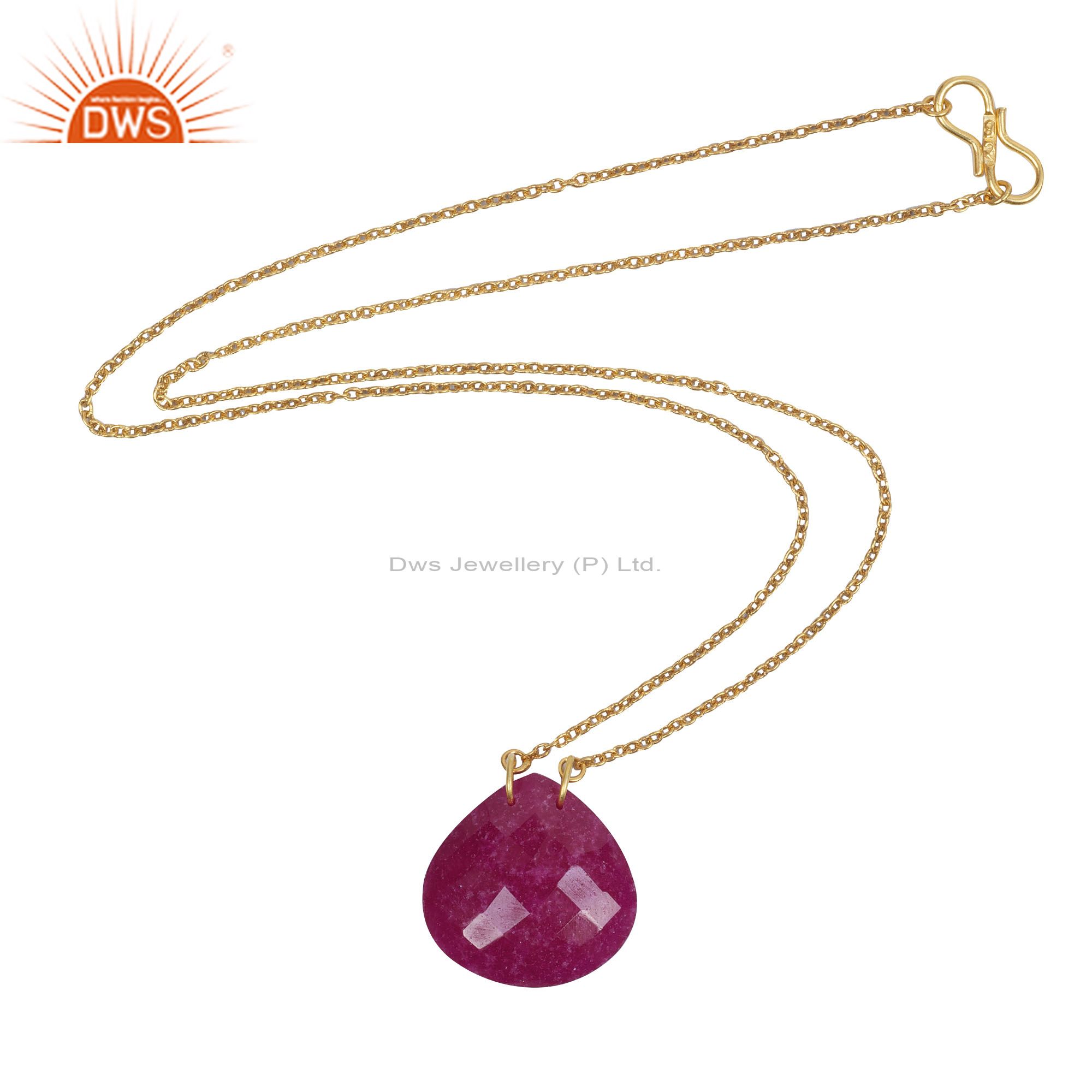 18K Yellow Gold Plated Sterling Silver Ruby Gemstone Pendant Chain Necklace