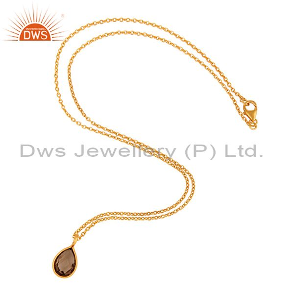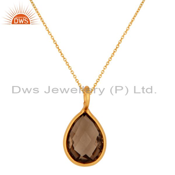 18K Yellow Gold Plated Sterling Silver Smoky Quartz Gemstone Drop Pendant