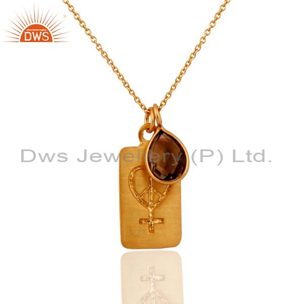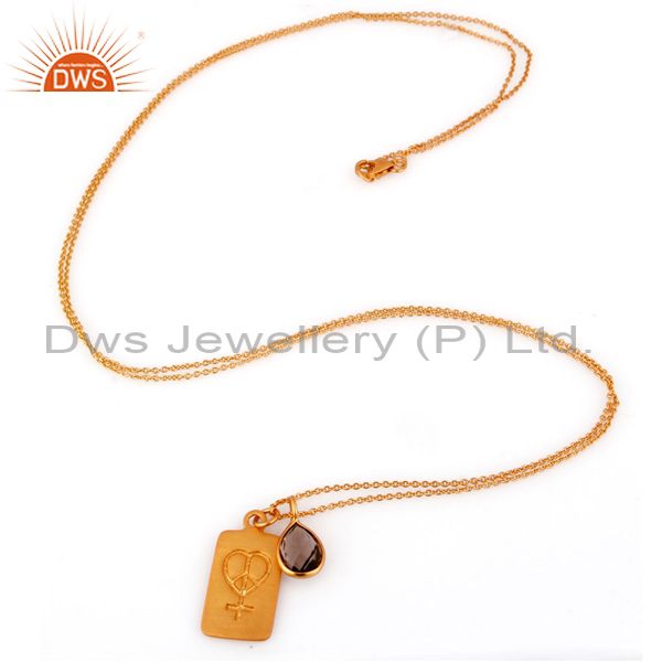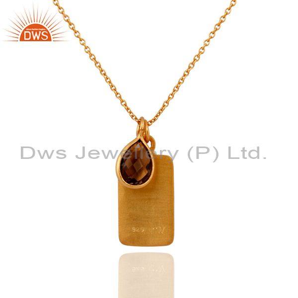 18K Yellow Gold Plated Sterling Silver Smoky Quartz Pendant Bezel With Chain