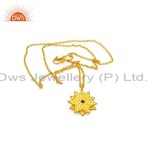 18K Yellow Gold Plated Sterling Silver Smoky Quartz Star Pendant With Chain