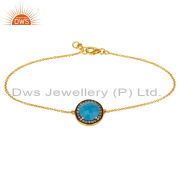 18K Yellow Gold Plated Sterling Silver Turquoise And CZ Pendant With 16" Chain