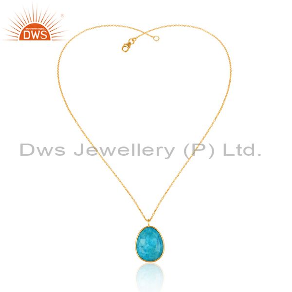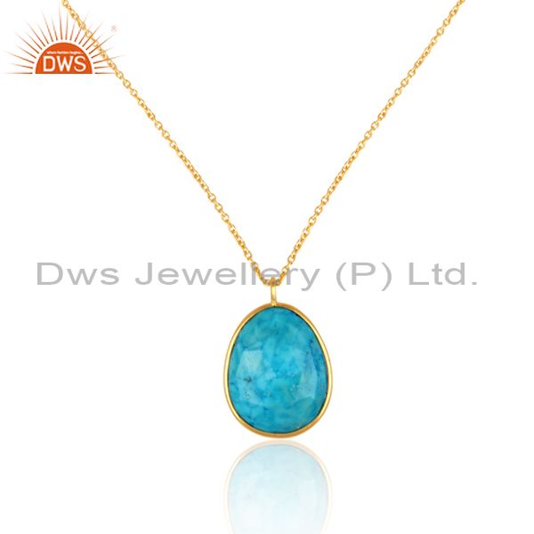 18K Yellow Gold Plated Sterling Silver Turquoise Bezel Set Pendant With Chain