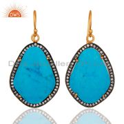 18K Yellow Gold Plated Sterling Silver Turquoise Gemstone Pendant 16" Necklace