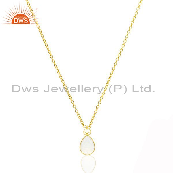18K Yellow Gold Plated Sterling Silver White Chalcedony Drop Pendant With Chain