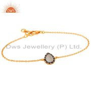 18K Yellow Gold Plated Sterling Silver White Moonstone And Cz Pendant With Chain