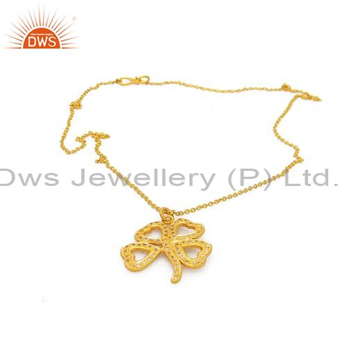 18K Yellow Gold Plated Sterling Silver White Topaz Flower Pendant With Chain