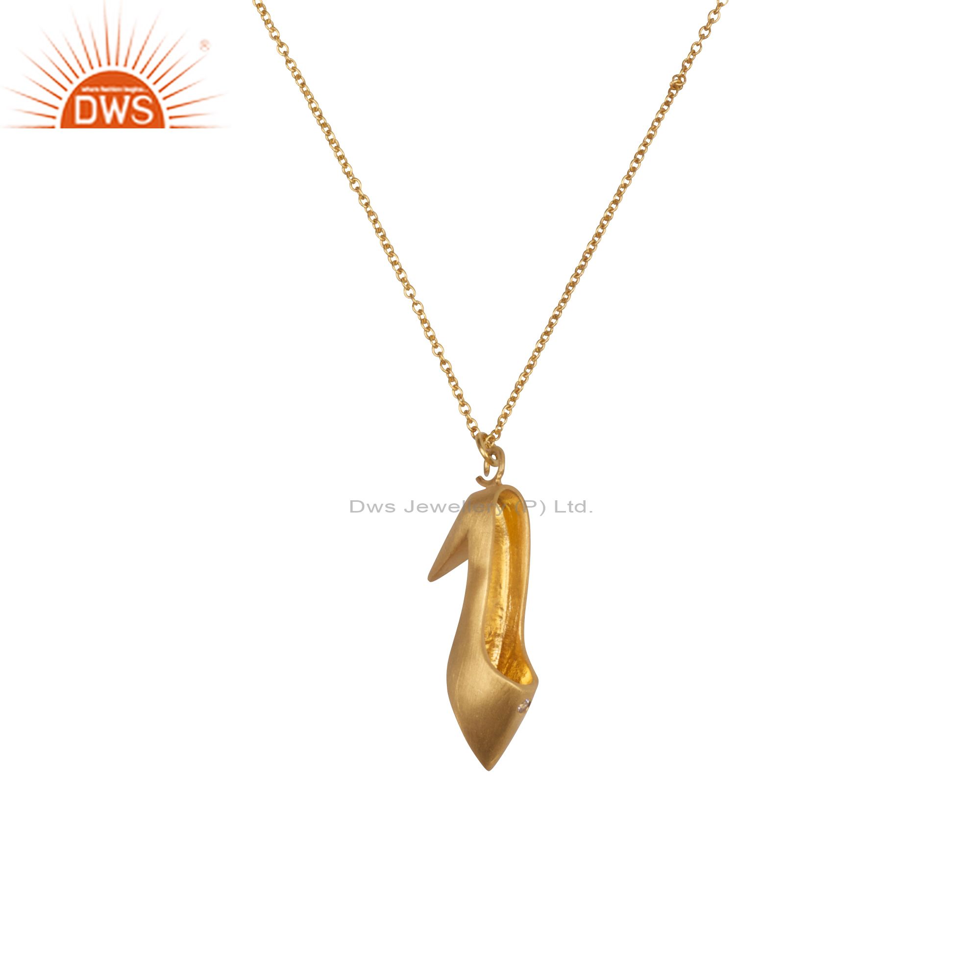 18K Yellow Gold Plated Sterling Silver White Topaz High Heel Shoe Chain Necklace