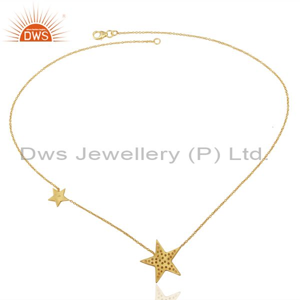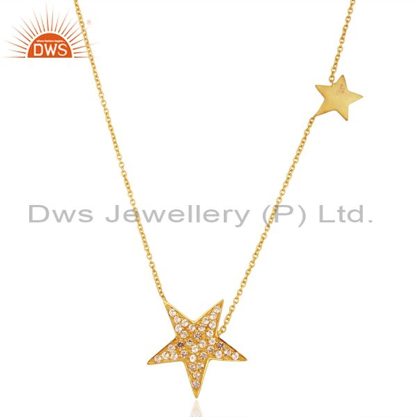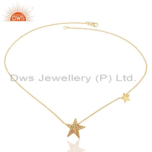 18K Yellow Gold Plated Sterling Silver White Topaz Star Charms Chain Necklace