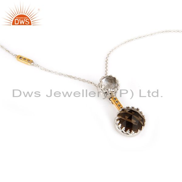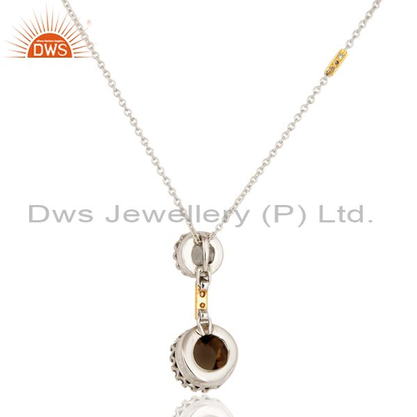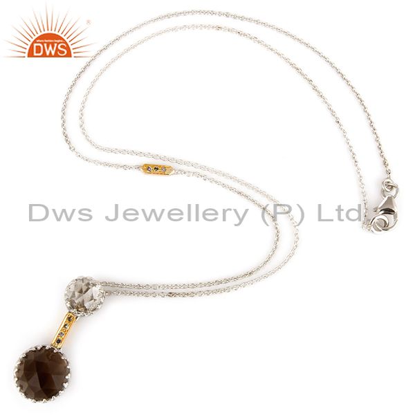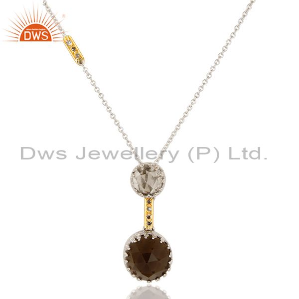 18K Yellow Gold Smoky Quartz And Natural Diamond Pendant With Chain