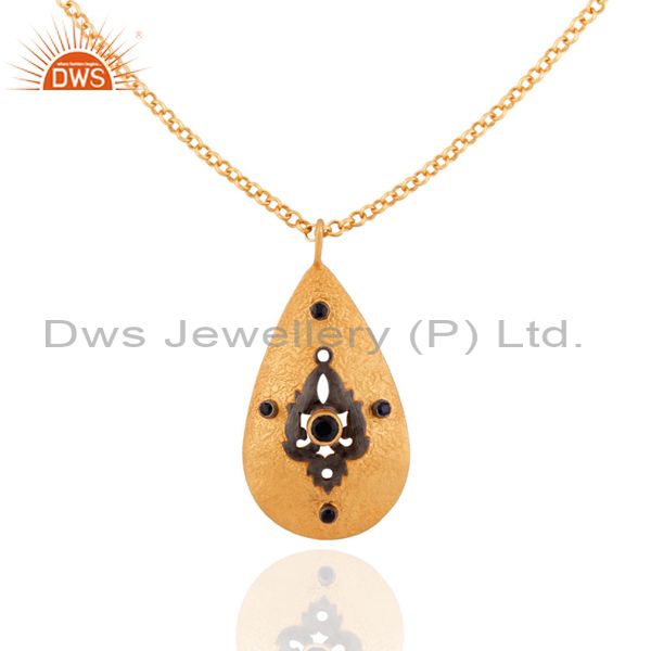 18K Yellow Gold Sterling Silver Natural Blue Sapphire Gemstone Handmade Pendant