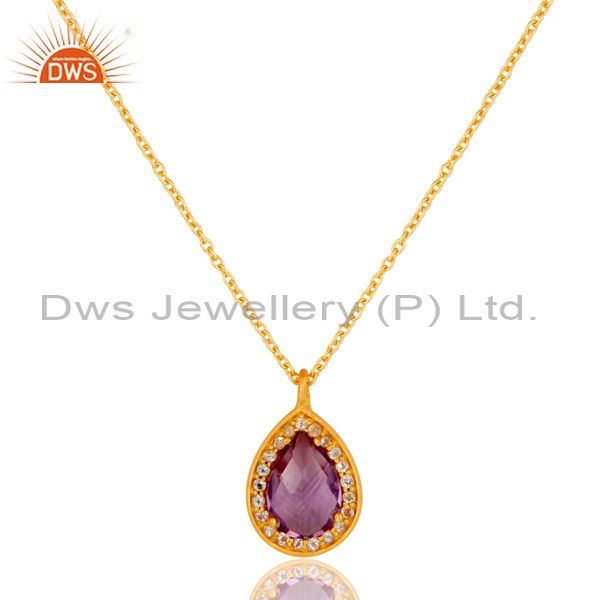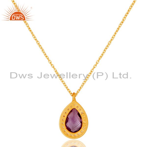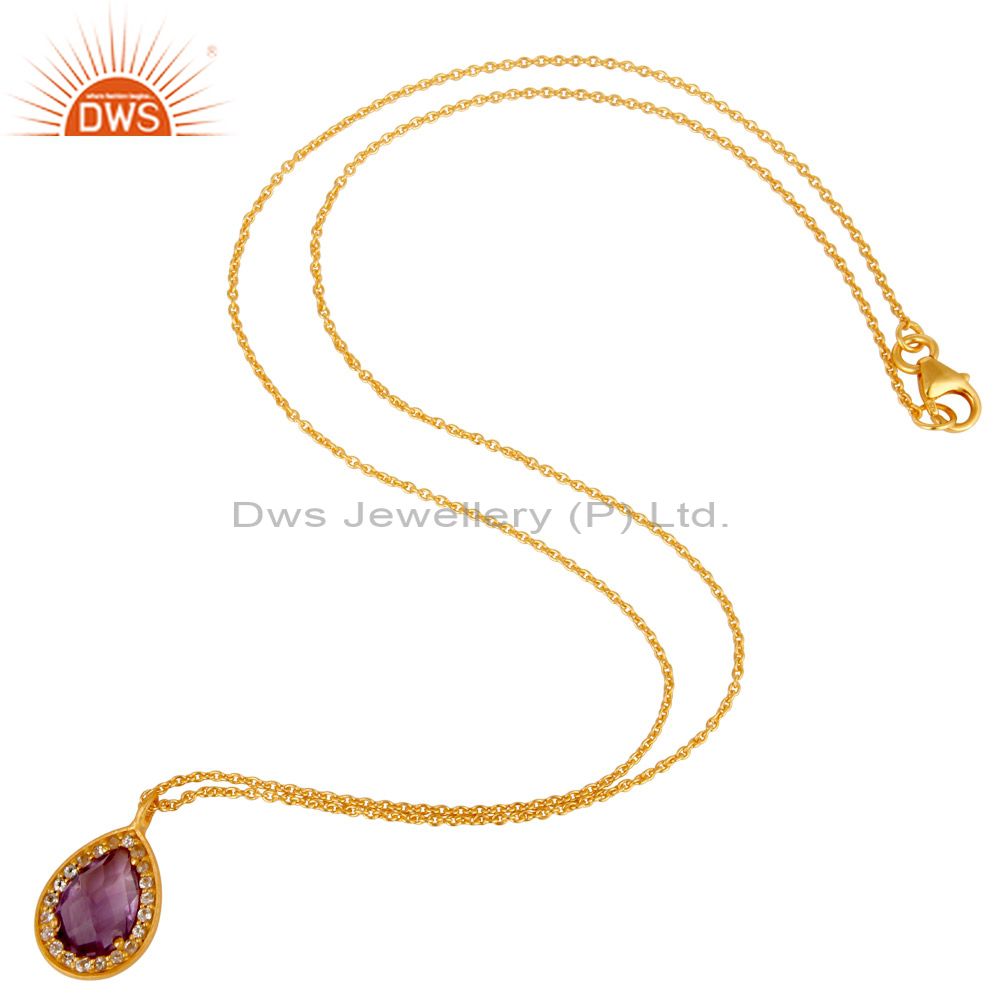 22K Gold Plated 925 Sterling Silver Amethyst Chain Pendant Necklace Jewellery