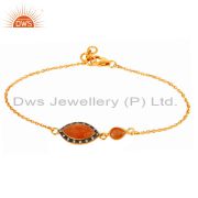 22K Gold Plated 925 Sterling Silver Peach Moonstone Gemstone Pendant With Chain