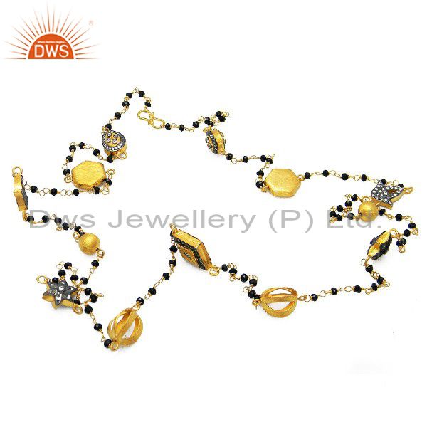 22K Gold Plated Sterling Silver Cz And Black Onyx Beaded Chain Necklace