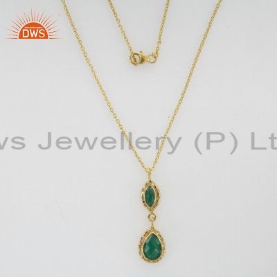 22K Gold Plated Sterling Silver Green Onyx And White Topaz Pendant With Chain