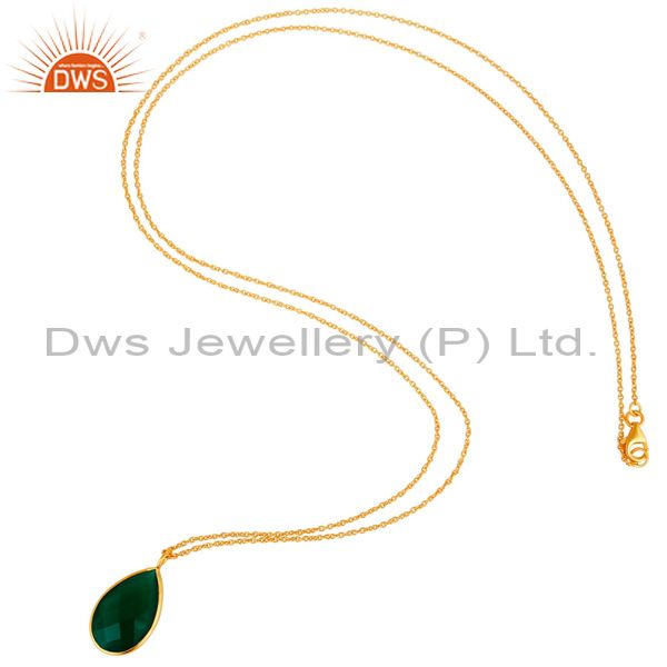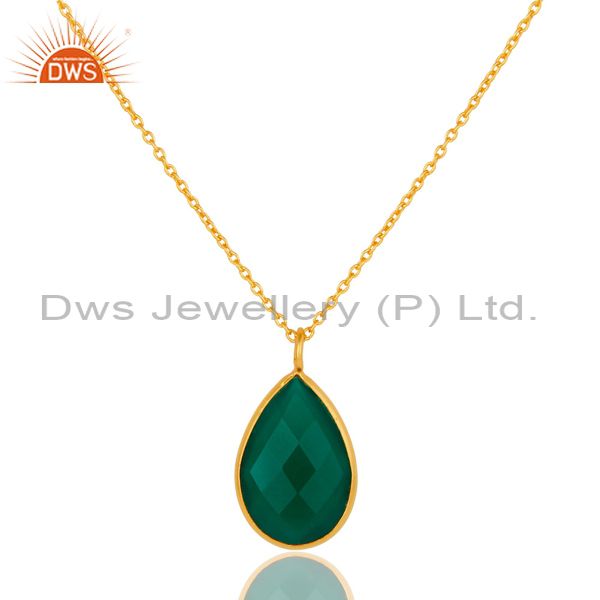 22K Gold Plated Sterling Silver Green Onyx Gemstone Chain Pendant Necklace