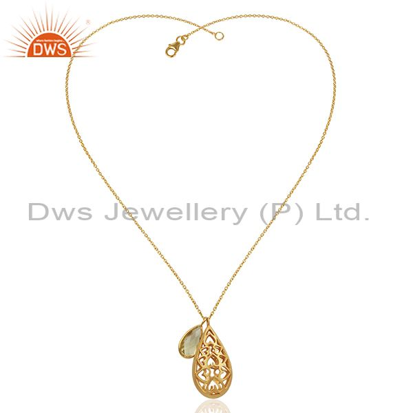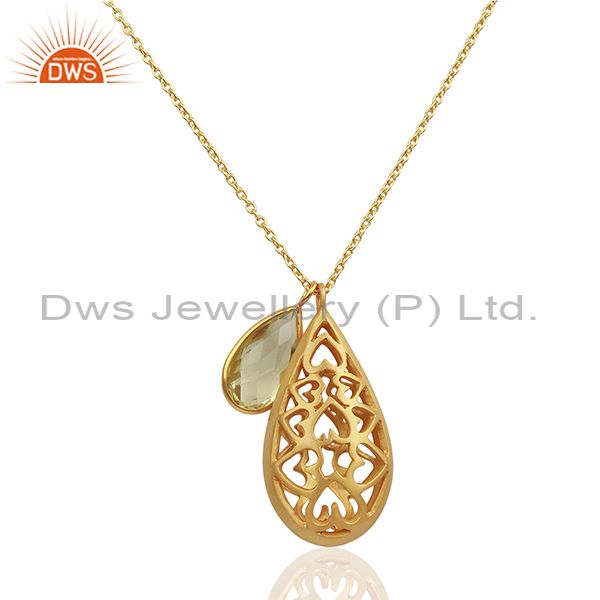 22K Gold Plated Sterling Silver Lemon Topaz Charms Filigree Pendant With Chain