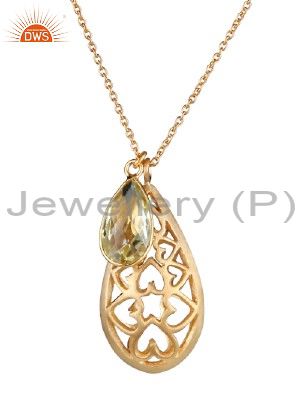 22K Gold Plated Sterling Silver Lemon Topaz Filigree Design Pendant With Chain