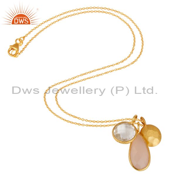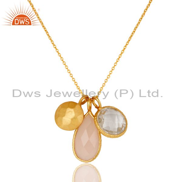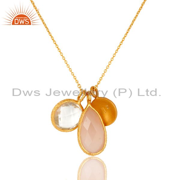 22K Gold Plated Sterling Silver Rose Quartz And Crystal Quartz Chain Necklace