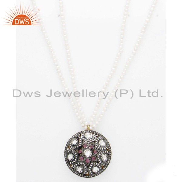 22K Gold Plated Sterling Silver Tourmaline And Cz Polki Pearl Victorian Necklace