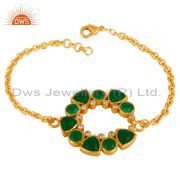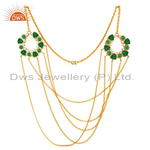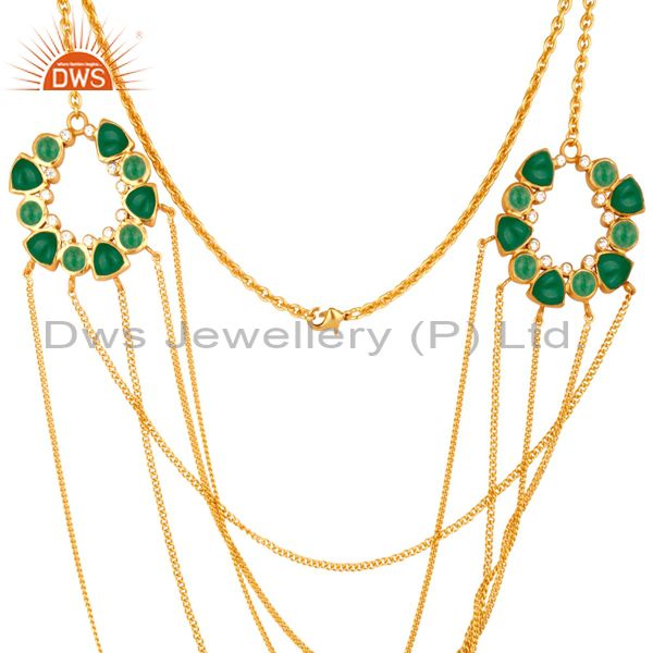 22K Yellow Gold Plated Brass Green Aventurine And Cz Multi Chain Necklace