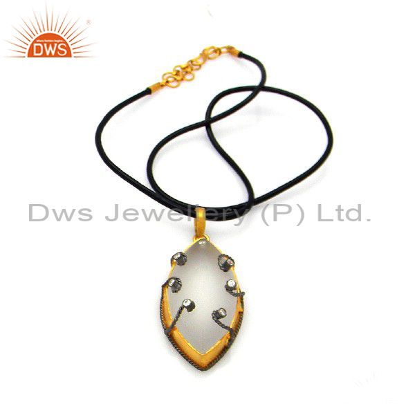 22K Yellow Gold Plated Sterling Silver Crystal And Cz Pendant With Cord Necklace