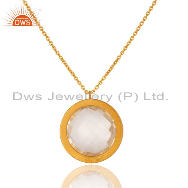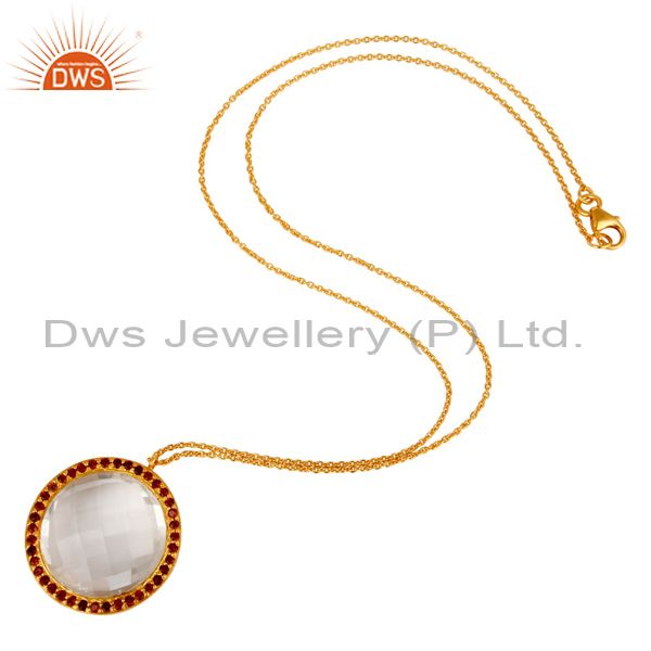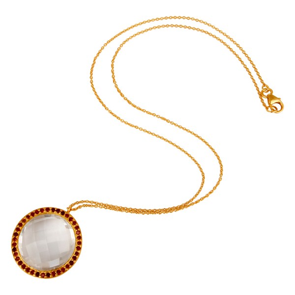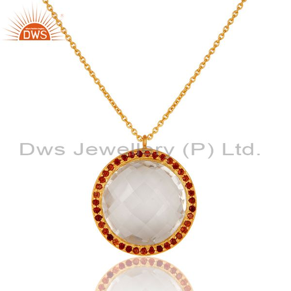 22K Yellow Gold Plated Sterling Silver Crystal Quartz & Garnet Pendant Necklace