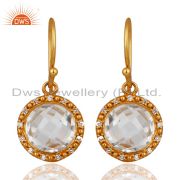 22K Yellow Gold Plated Sterling Silver Crystal Quartz And Black Cz Halo Pendant