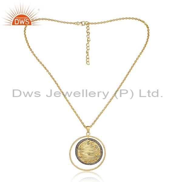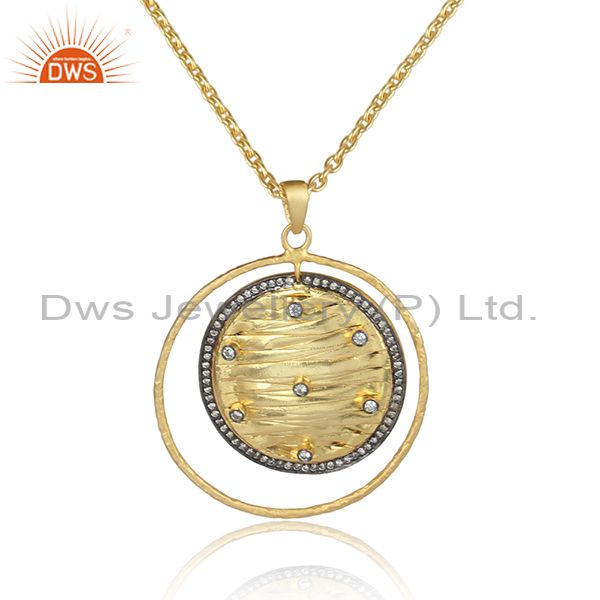 22K Yellow Gold Plated Sterling Silver Cubic Zirconia Woven Designer Pendant