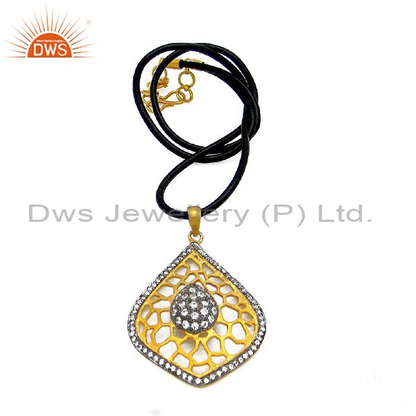 22K Yellow Gold Plated Sterling Silver Cz Filigree Pendant With Black Cord