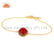 22K Yellow Gold Plated Sterling Silver Red Aventurine And CZ Pendant Necklace