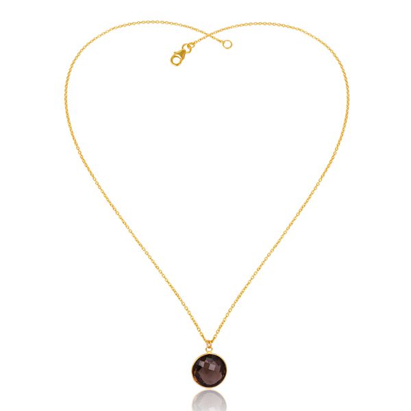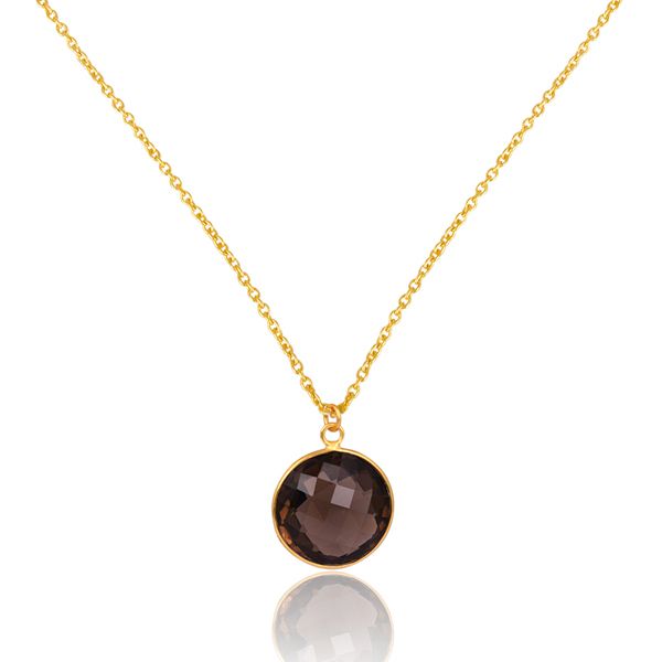 22K Yellow Gold Plated Sterling Silver Smoky Quartz Bezel Set Pendant Necklace