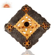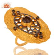 22K Yellow Gold Plated Sterling Silver Smoky Quartz Designer Pendant With Chain