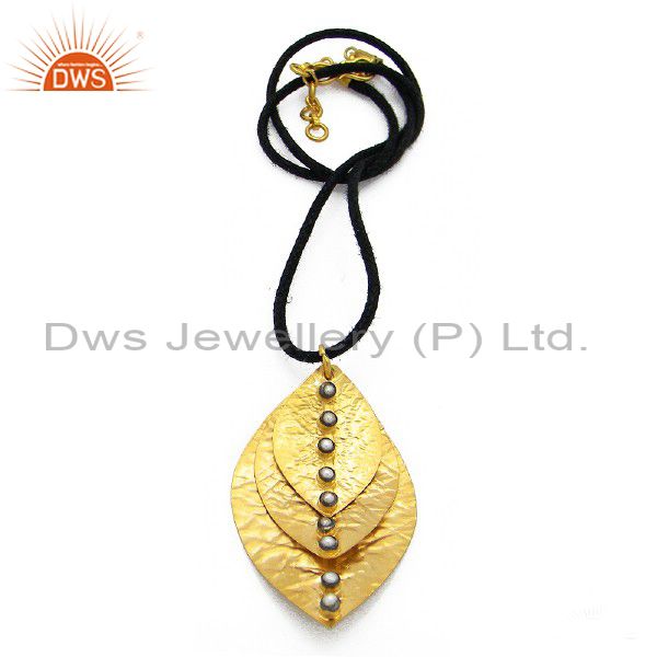 22K Yellow Gold Plated Sterling Silver White Pearl Petals Designer Pendant