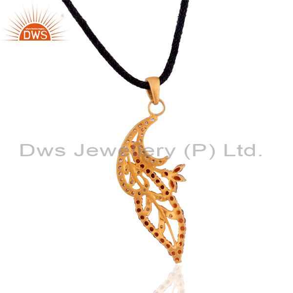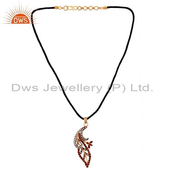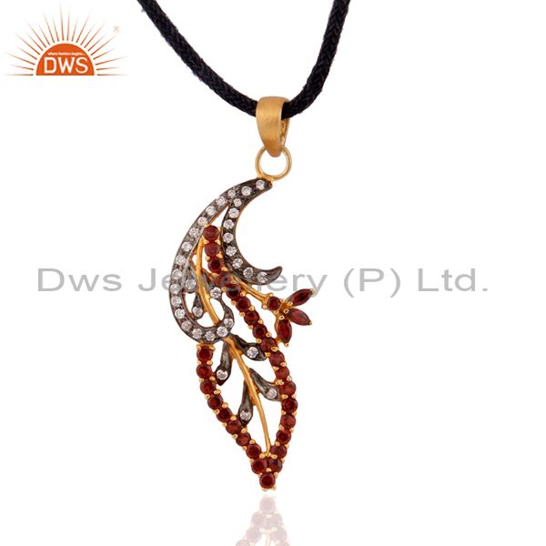 24K Gold Over 925 Sterling Silver Garnet Gemstone Pendant With White Zircon