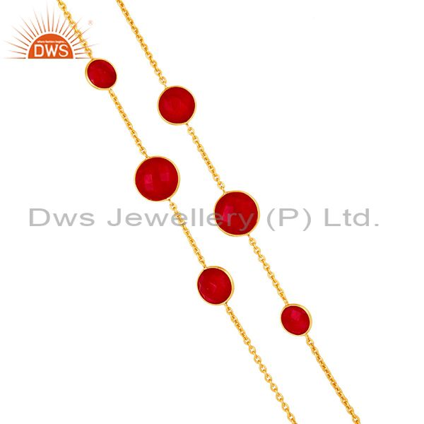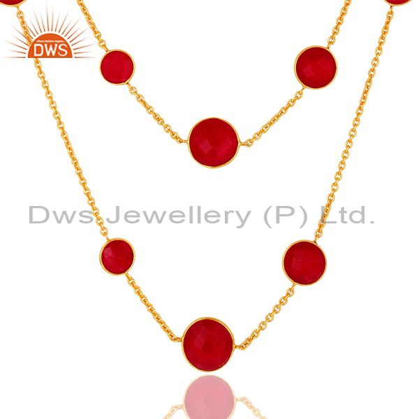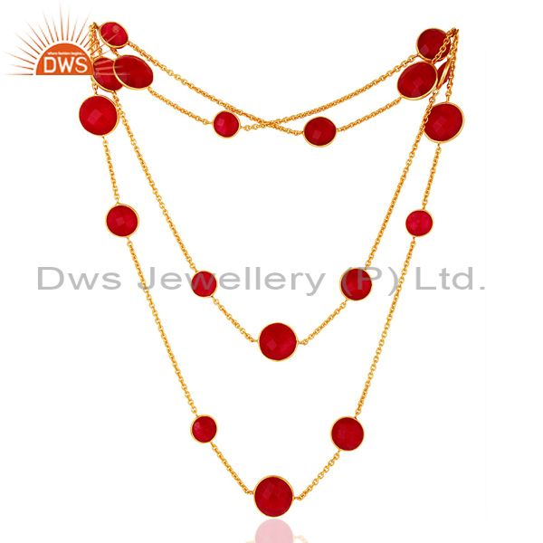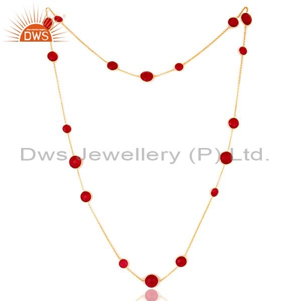 24K Gold Plated Sterling Silver Natural Aventurine 32" Chain Necklace Jewellery