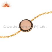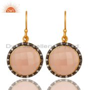 24K Gold Plated Sterling Silver Rose Chalcedony Gemstone & Cz Pendant Necklace