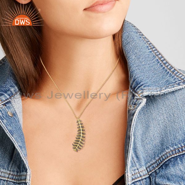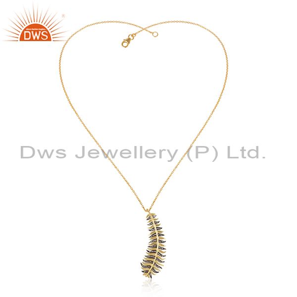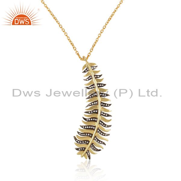 24K Yellow Gold Plated Brass Cubic Zirconia Leaf Designer Pendant With Chain